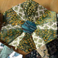 I started off with a couple of ancient layer cakes, one batik and the other in regular quilting cotton. These are old and I have no idea what they were called.